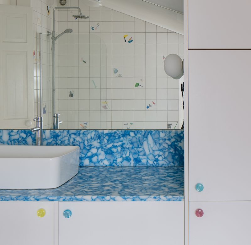 The conversion of an Indian restaurant on the Thames Estuary for use as an arts and residency space. Considered decisions were made about what should be retained, to preserve the evocative qualities of the building’s history. The colourful facade charismatically draws people in. Remnants of arches remind visitors of the former restaurant. Diffuse daylight brought in through large new rooflights is suggestive of the tranquil skies of the surrounding Essex landscape. Encaustic tiles reclaimed from a temporary exhibition were carefully cleaned and relaid as a colourful carpet throughout the ground floor, knitting the different spaces together.