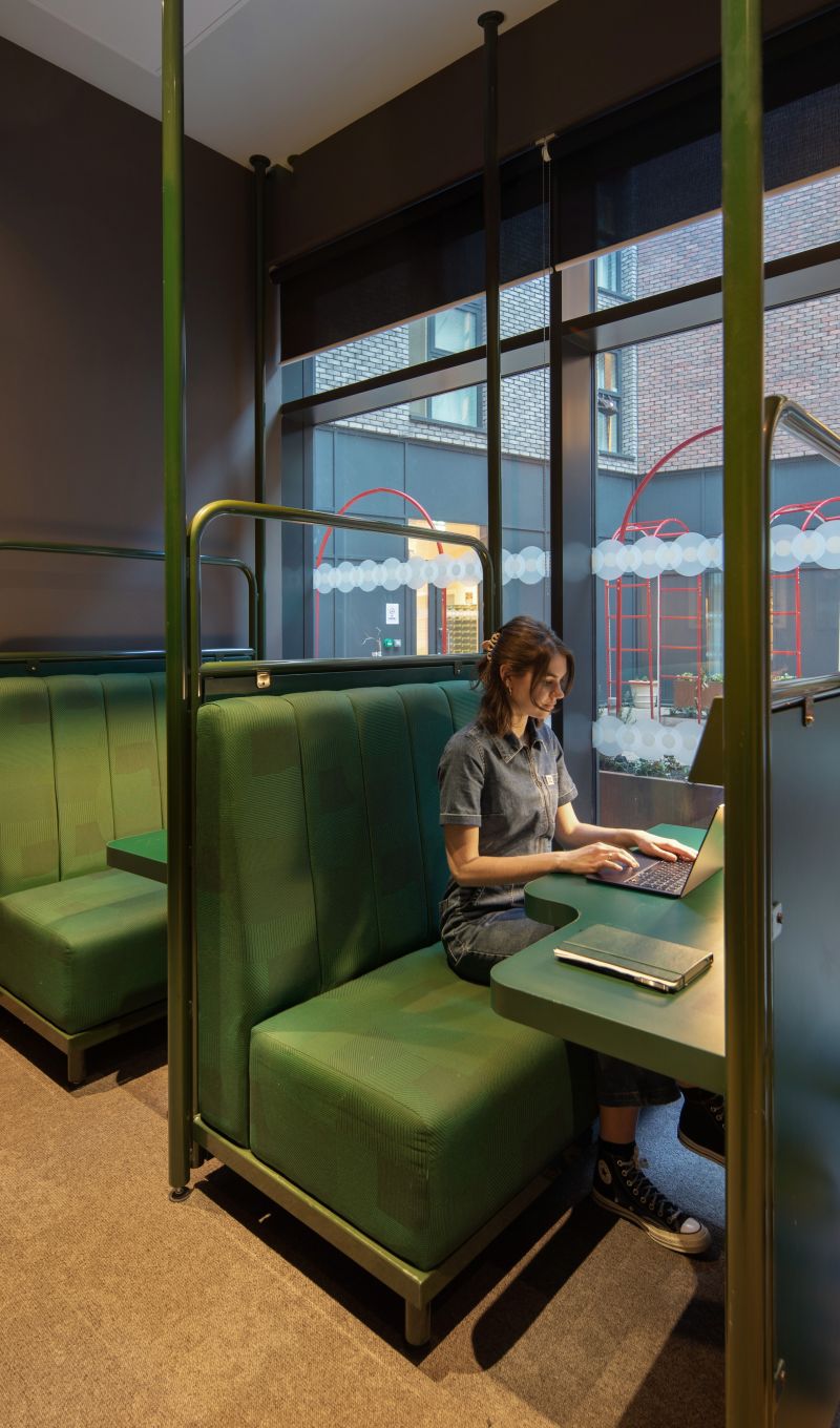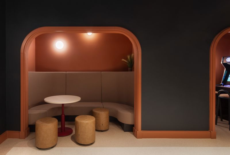 Echoing the heritage of the site, the design incorporates the bold shapes, rich colour palettes and textured materiality characteristic of Art Deco. Rounded forms and geometric patterns nod to transport aesthetics, while elements of arcade-inspired graphics and illumination bring a playful sense of nostalgia.