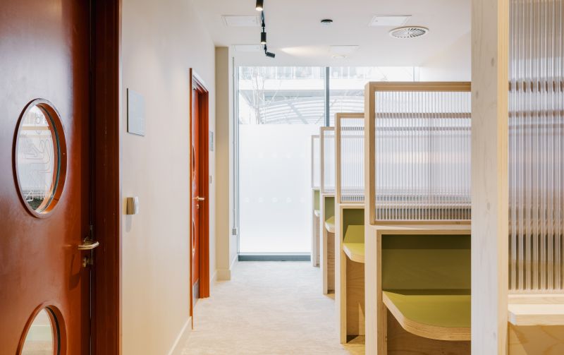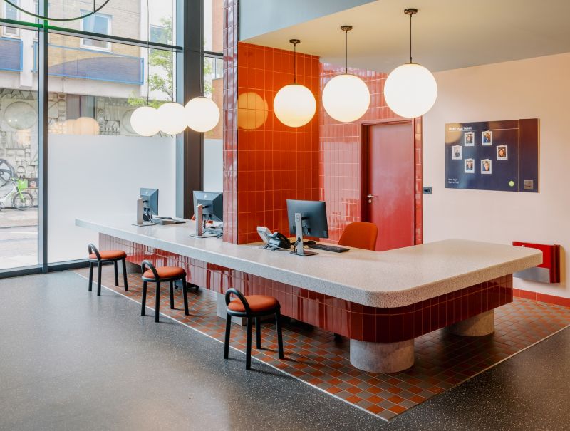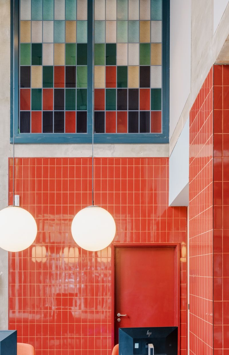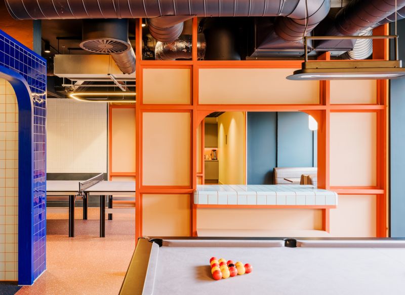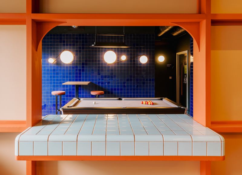 The site sits within a historic network of Guild Halls, and our design makes visual reference to the forms and jewel tones of these distinctive interiors in the creation of new co-working spaces, an 18th floor lounge and private dining area, gym, karaoke lounge, retro arcade and cinema rooms, and informal diner and play spaces.