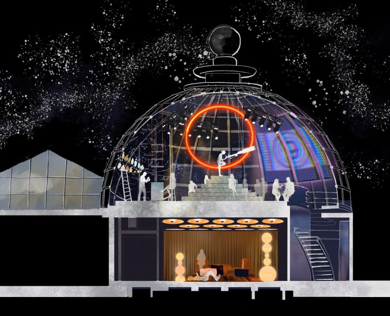 Our concept design for the public areas of the Criterion Hotel in London’s Piccadilly Circus. We imagined a new home for Newton’s Observatory within the spectacular glass dome; a space for surveying the majesty of the illuminated city. Below this, a grand Lobby Bar is connected directly to the street via a tunnel-like canopy which hugs the curve of the arched entrance, ascending above the escalators and stretching wide across the mezzanine floor. Its form, colour and illumination draws the eye upwards to the bar lining the full width of the space. Guests ride upwards to a sunken amphitheatre surrounded by informal stepped seating. Set pieces are dotted around, carefully positioned to allow for framed views and curated backdrops for digital memories.