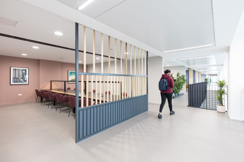 In our redesign we focussed on optimising the layout to provide improved social, dining and study spaces, as well as a reconfigured reception which upgrades the staff facilities and creates a playful and approachable street presence.