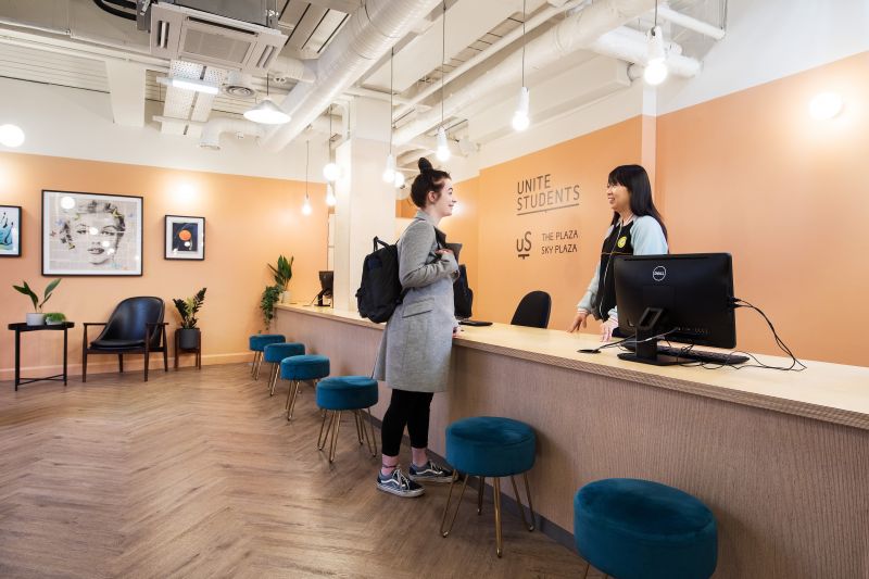 Tasked with the job of transforming the ground and first floor communal spaces of Unite’s Sky Plaza student residences in Leeds on a tight budget, the work was designed and constructed in less than two months.