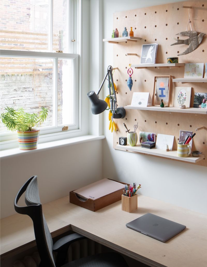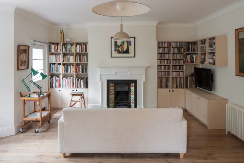 The neutral interior is bright and calm, interspersed with eclectic artworks and views to the secret wild garden.