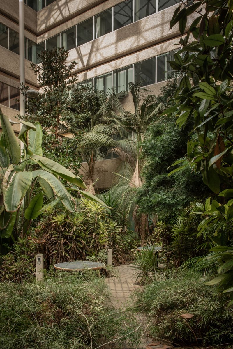 On our first site visit we found an irrigation system which had been left running in the empty building for several years had quietly created an incongruously lush hidden jungle.